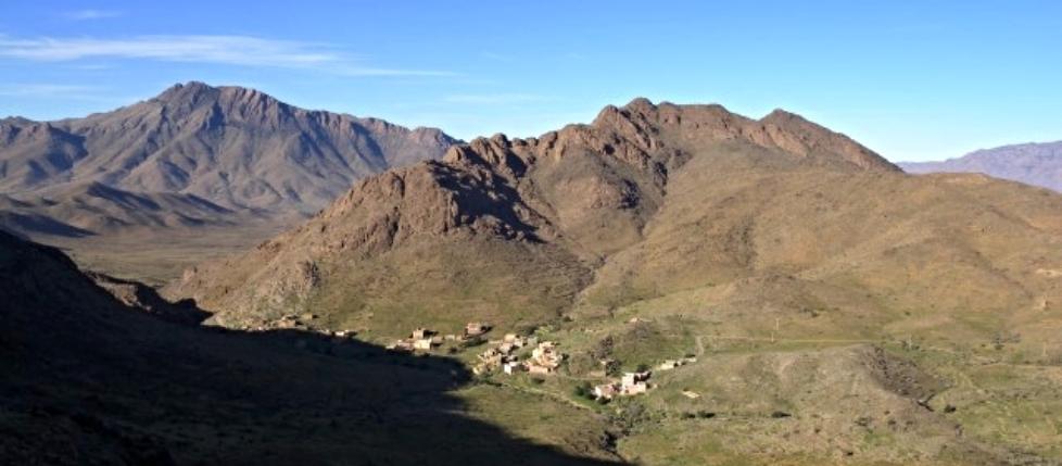 This is a very fine high-level circular walk which takes in some of the most impressive and important mountain faces above Amzkhssan, crosses some remote high passes, and features some of the best views you're likely to find in the range. Indeed, on a clear day it is possible to see all the way to Jebel Toubkal in the High Atlas over 200km away. The walk is mostly on ancient shepherd paths, and has significant cultural interest as well as awe-inspiring scenery. Some sections, however, are over pathless terrain and some care is required with route-finding. A full description (pdf download) of this highly-recommended walk can be found on our downloads page here.